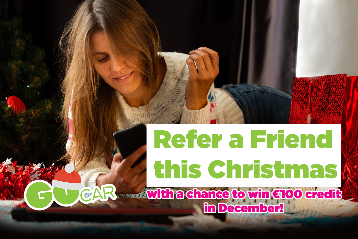 We know you love all the flexibility GoCar brings, why not spread the word and earn some valuable driving credit for those special Christmas trips!